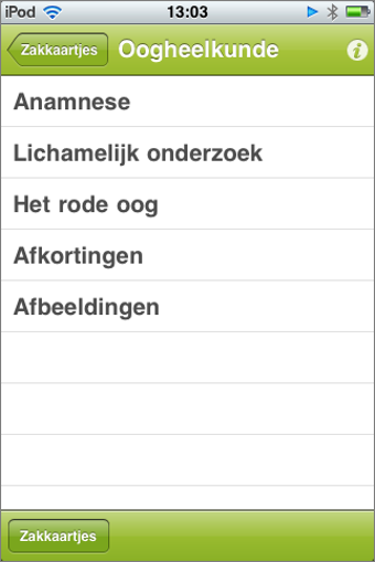 Medische Zakkaartjes is een gratis hulpmiddel voor coassisten en artsen. Per vakgebied biedt de iPhone-app de belangrijkste medische feiten en figuren in als toegankelijk 'spiekbriefje.'